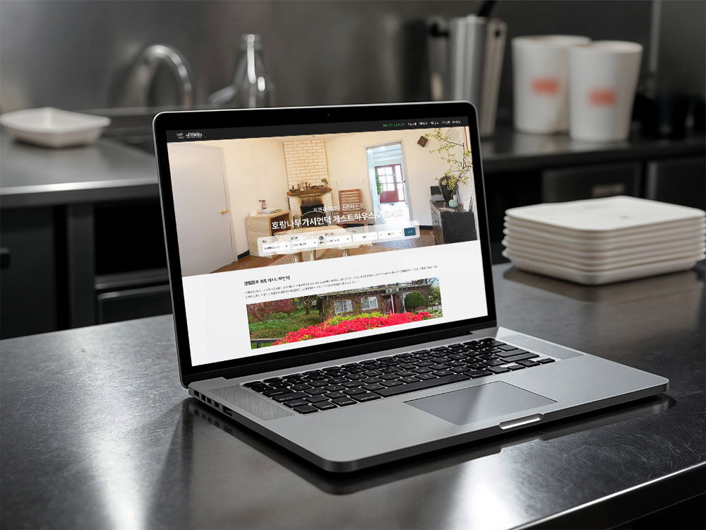 기획 의도 : 기존 호랑가시나무 게스트하우스의 불편함을 조사/분석하여 메인 페이지부터 객실, 로그인, 가입을 최신 호텔 및 게스트하우스를 레퍼런스 삼아 리디자인했습니다.